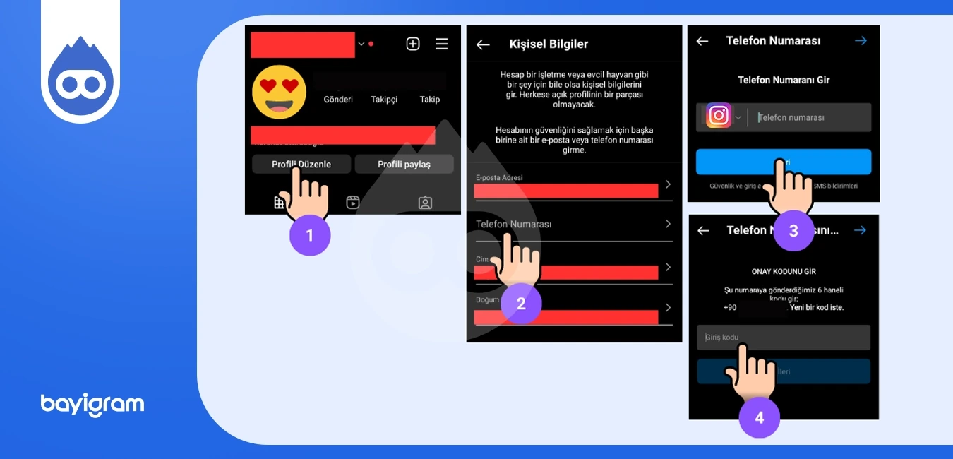 Instagram telefon numarası ekleme Android ve ios cihazlar için aşağıdaki gibi yapılmaktadır: