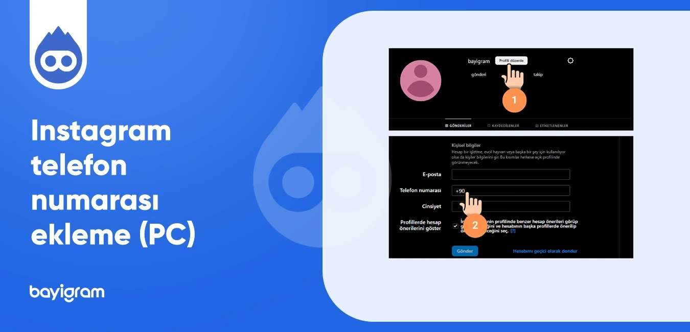 Instagram telefon numarası ekleme masasüstü (PC) veya web tarayıcı üzerinden aşağıdaki gibi yapılmaktadır: